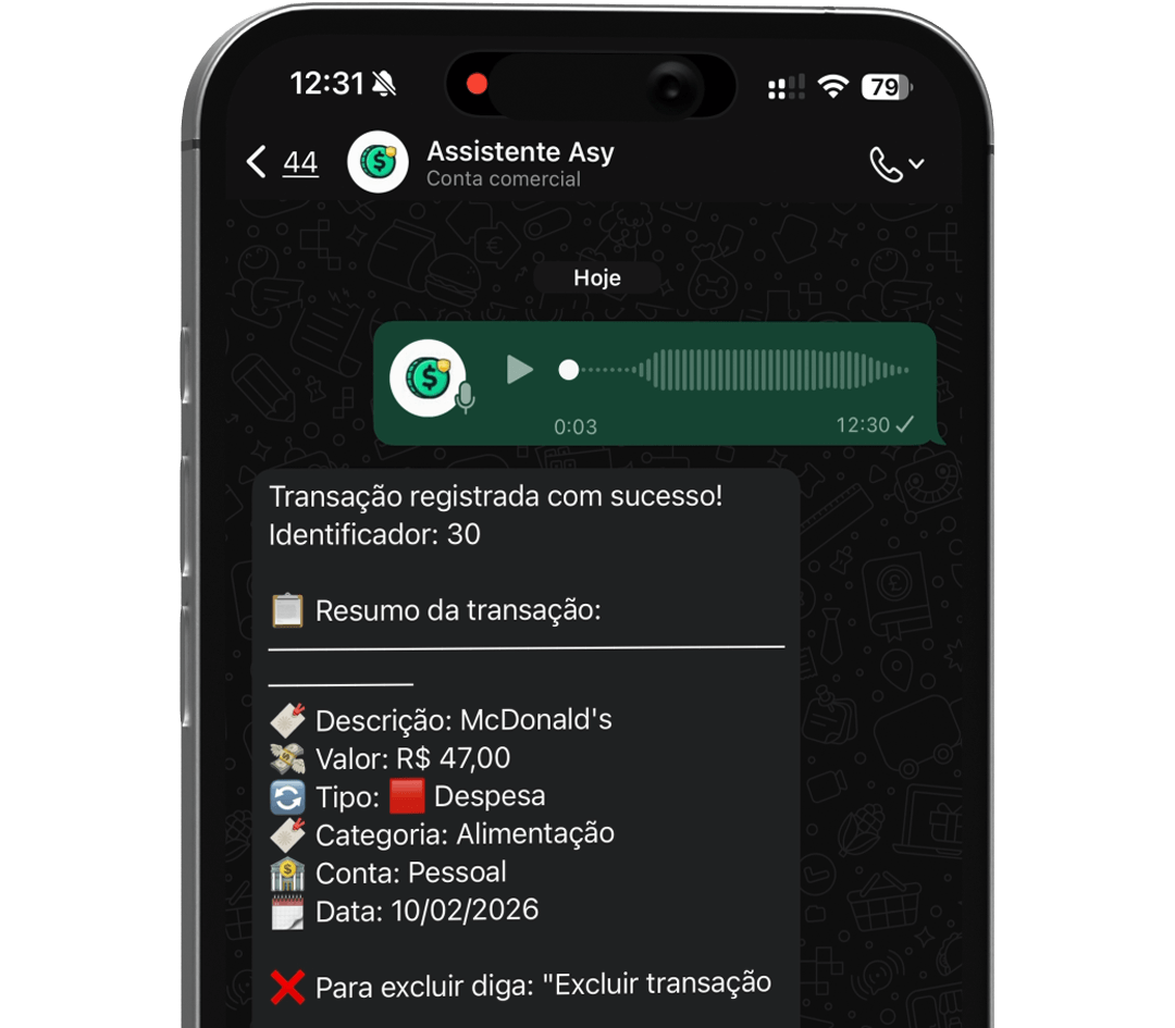 Você simplesmente envia uma mensagem com suas despesas ou receitas, e a IA do GranaZen cuida do resto!